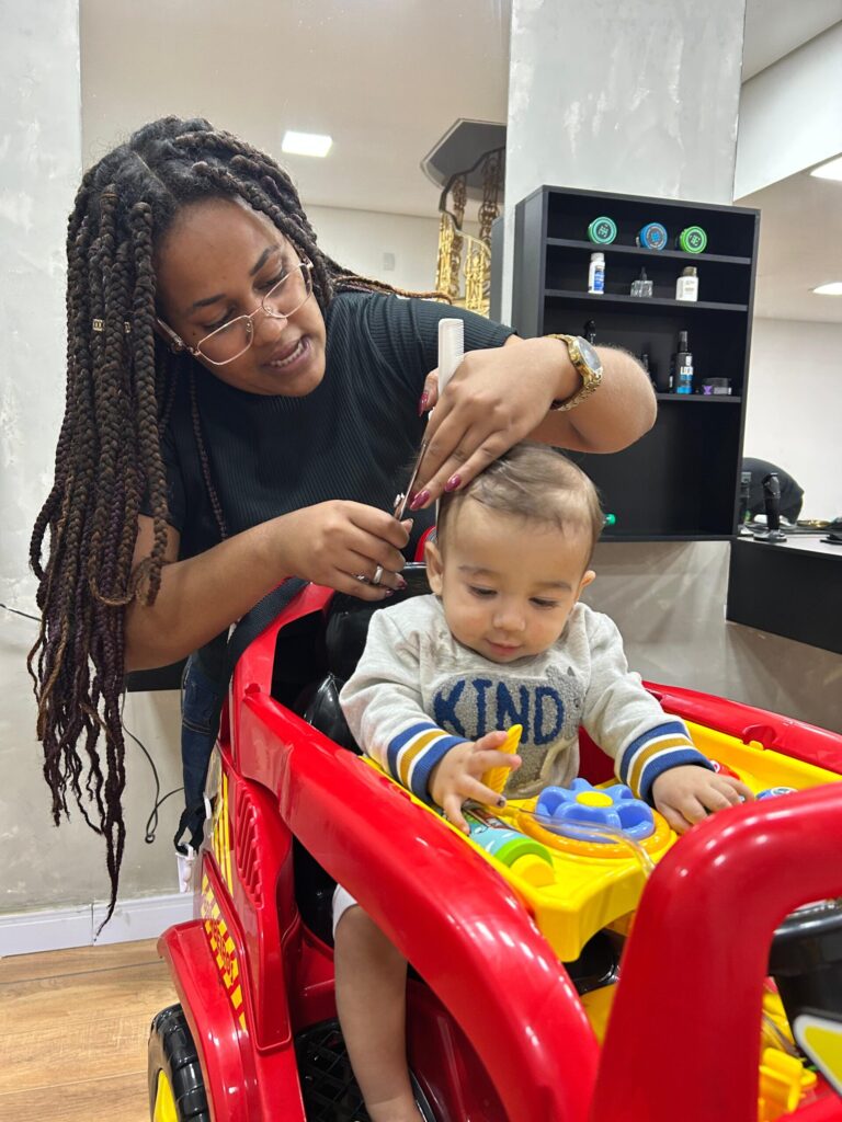 Profissionais com experiência no primeiro corte de cabelo e nos demais cortes infantis;